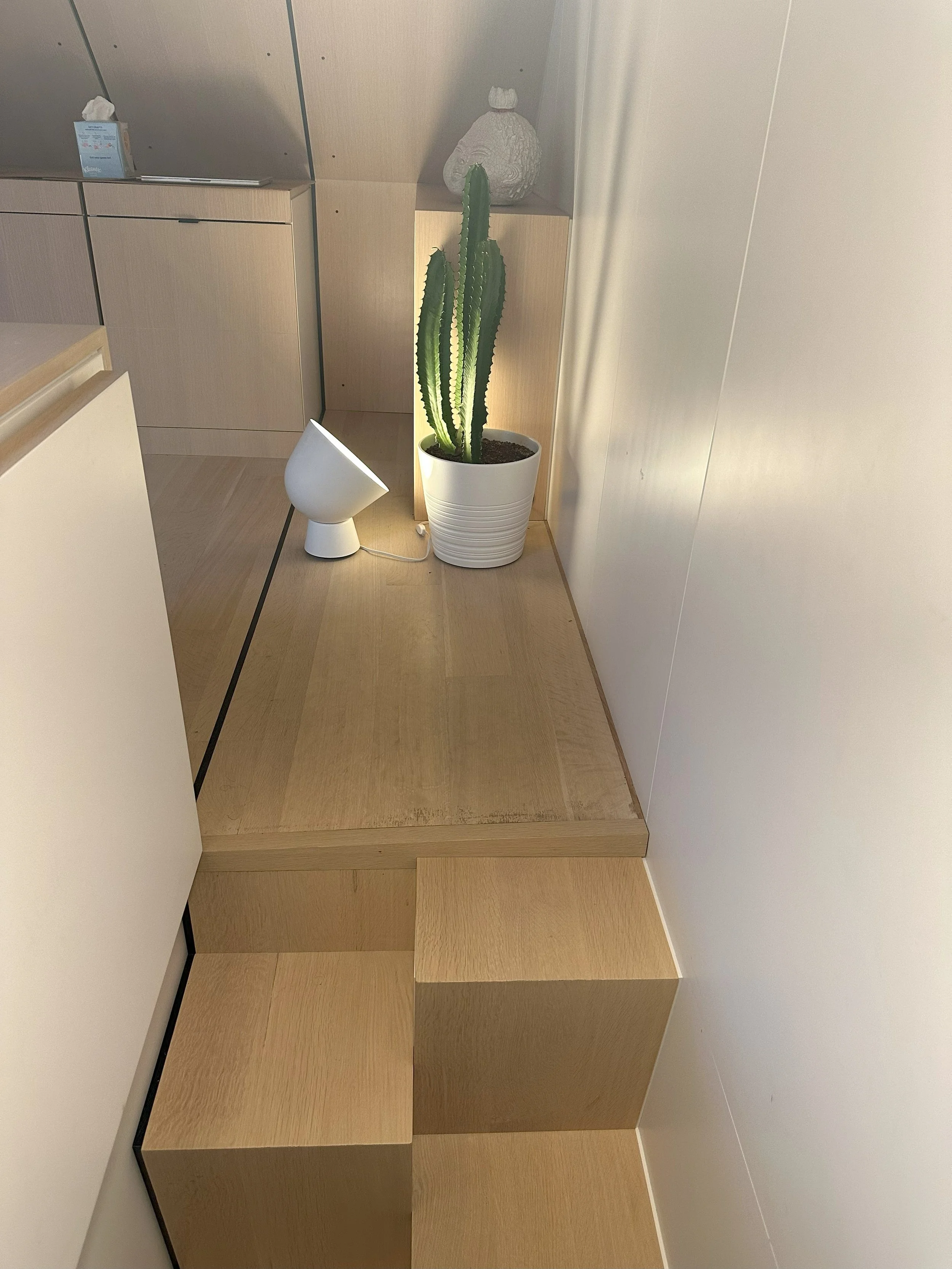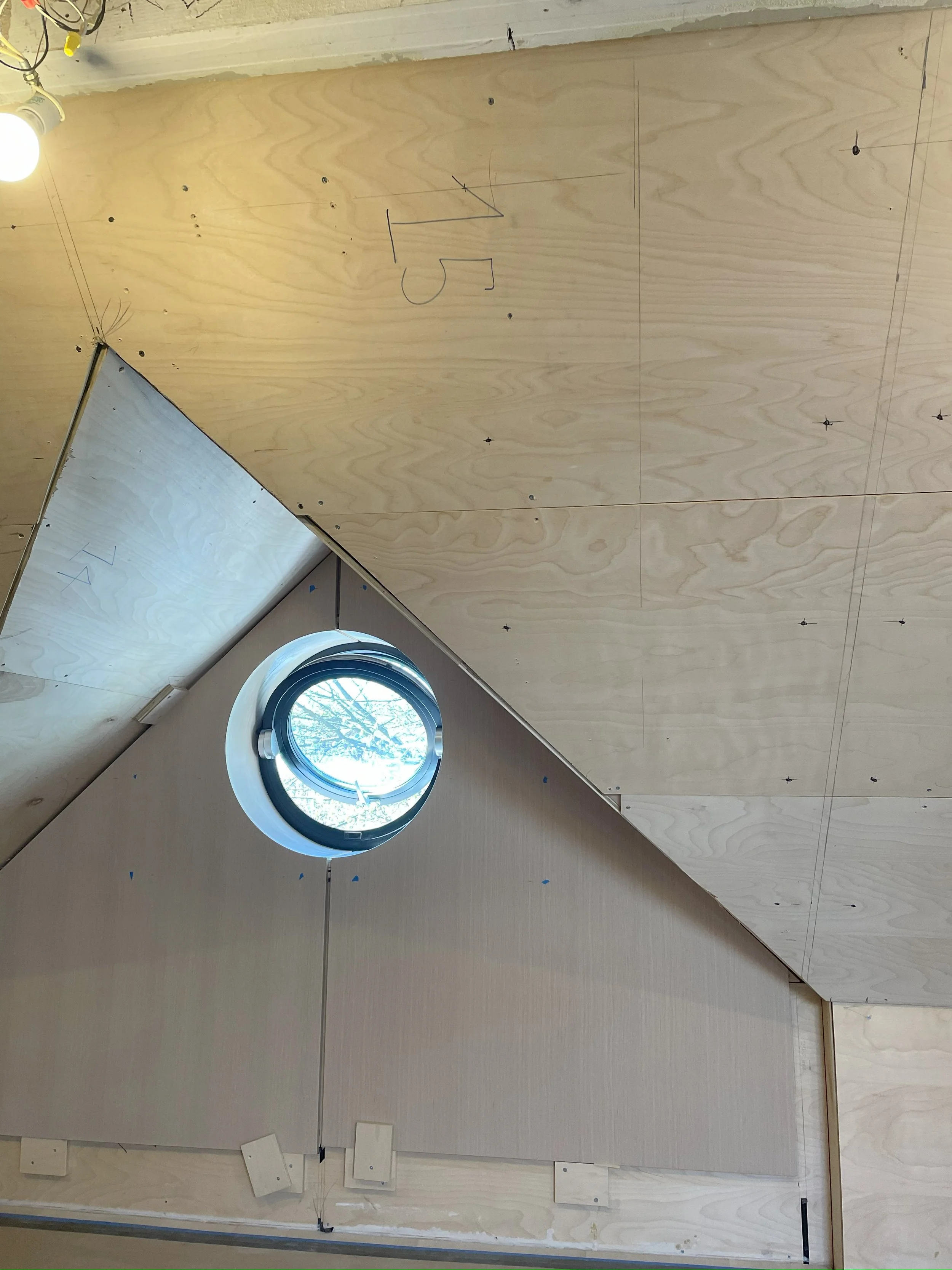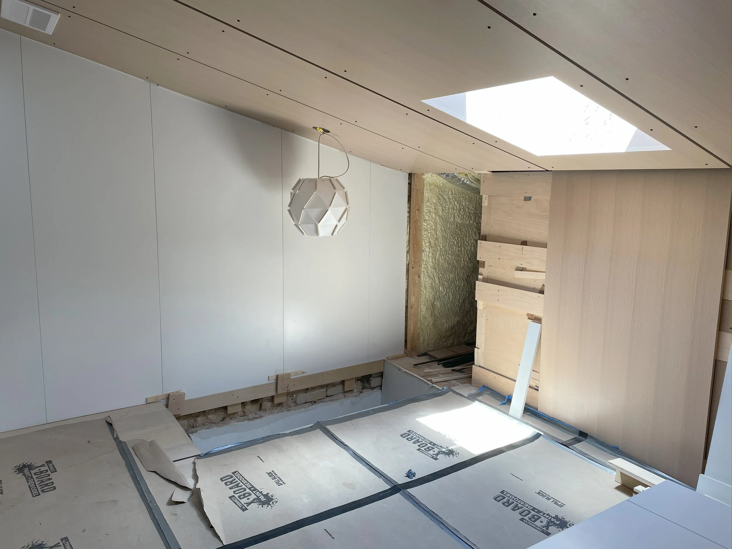 At the heart of our practice, we are architects who are passionate about the act of making. We love using familiar materials in new and unexpected ways. We love investigating new ways for the ceiling to connect to the wall and for the wall to connect to the floor. It was ultimately the possibility of this type of intimacy that led us to accept a commission to design a tiny loft office and guest bedroom in the attic of a Cleveland Park duplex.